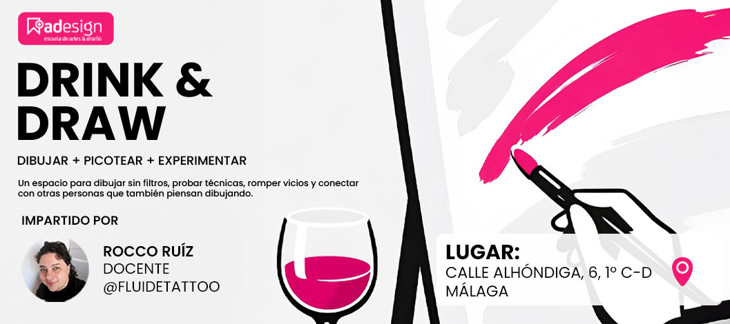 adestudios Calle Alhóndiga, 6, 1º C-D,, Málaga, Málaga, Spain« Todos los Eventos Drink & DrawDibujar + Picotear + Experimentar Descubre un espacio creativo para dibujar sin filtros¿Te apetece dibujar sin presión, experimentar nuevas técnicas y compartir un rato creativo con otras personas?Drink & Draw es un encuentro artístico pensado para soltarte, probar, equivocarte y disfrutar del proceso. Un ambiente relajado donde el dibujo...
